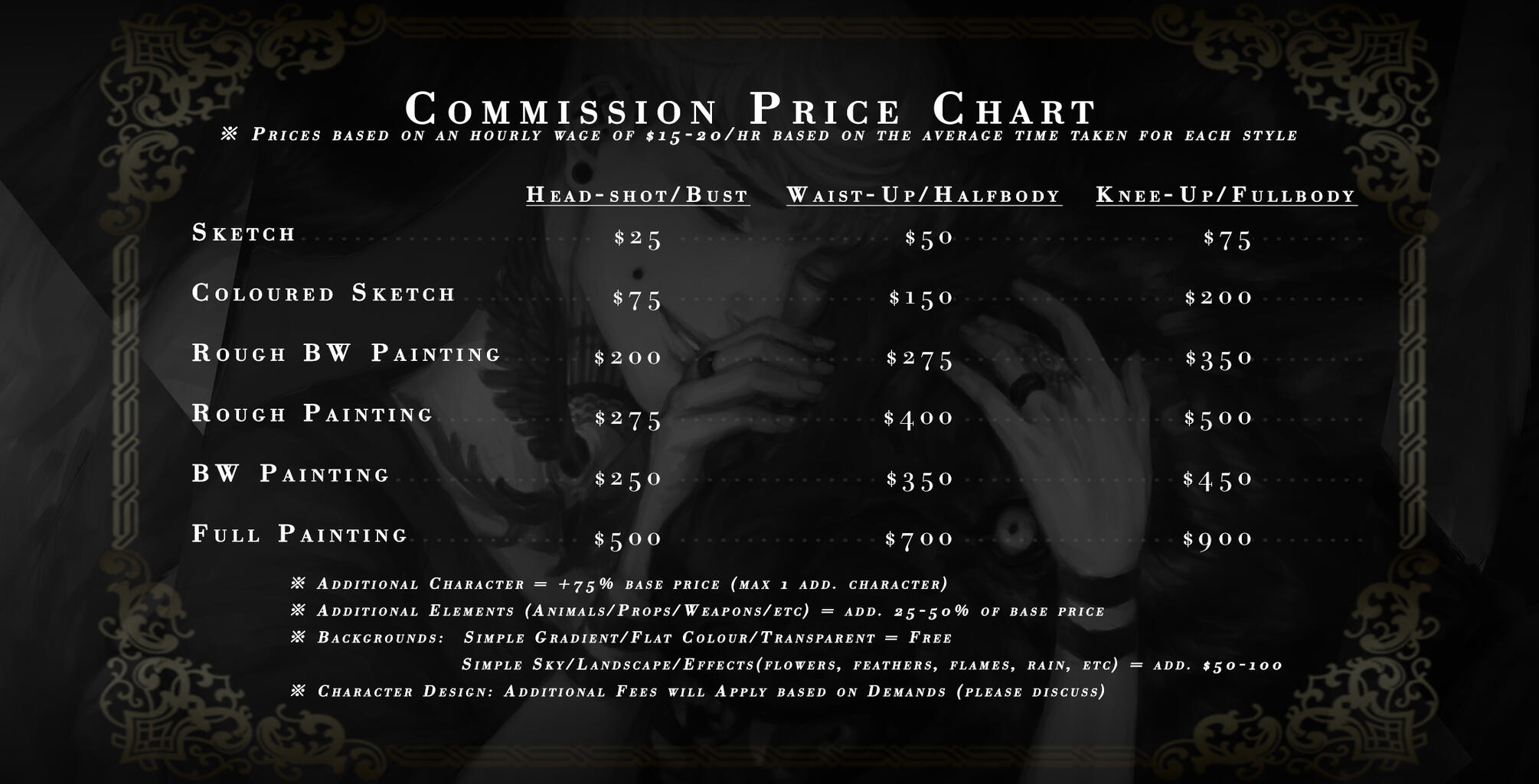 If you plan to use the art Commercially, expect to pay double the base prices